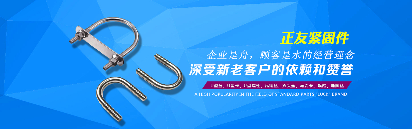河北正友緊固件制造有限公司(原永年縣河北鋪天緣緊固件廠)坐落在永年縣河北鋪工業(yè)區,地理位置優(yōu)越,交通便利。自1994年建廠至今,在各界人士的關懷和新老客戶的擁護及全廠員工的努力下,企業(yè)日益發(fā)展壯大,產品不斷更新,以U型絲、U型卡、U型螺栓、瓦鉤絲、雙頭絲、馬安卡、喉箍、地腳絲等產品的過硬質量,創(chuàng)下在標準件領域知名度較高的“正友”品牌! 為答謝新老客戶長期以來對我廠的幫助與信任,我廠在提高質量的同時,更是加強了產品售后服務的力度!以“企業(yè)是舟,顧客是水”的經營理念,鑄就“正友”日后的輝煌之路!